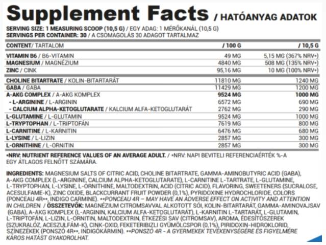 Einerseits enthält das Produkt eine große Menge der Aminosäure GABA und die Aminosäure L-Tryptophan , ein Vorläufer von Melatonin , das Schlafhormon, in unserem Körper. Von den Aminosäuren enthält es auch L-Glutamin Und L-Carnitin und wird durch zwei Wirkstoffkombinationen ergänzt, die Kombination aus L-Lysin , L-Ornithin Und Cholin und die klassischen Spurenelemente Zink , Magnesium Und B6 .