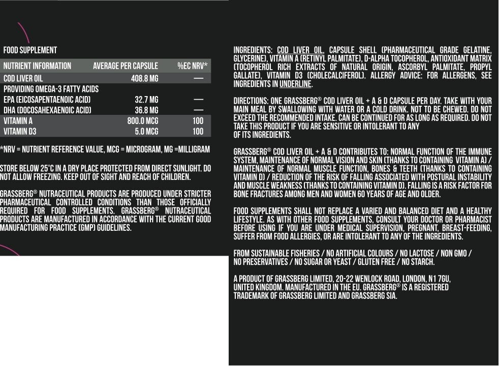 Grassberg Lebertran + A + D ist eine bekannte Quelle für Vitamine und essentielle Fettsäuren. Wie der Name schon sagt, wird es aus Lebertran gewonnen und ist als flüssiges Nahrungsergänzungsmittel oder als Kapsel erhältlich.