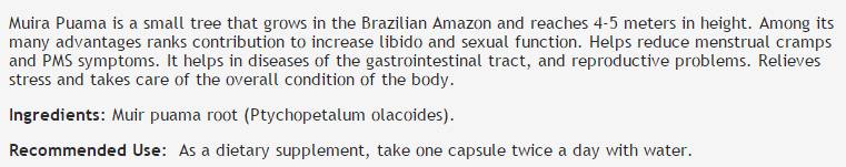 Zutaten: Muira-Puama-Wurzel (Ptychopetalum olacoides).