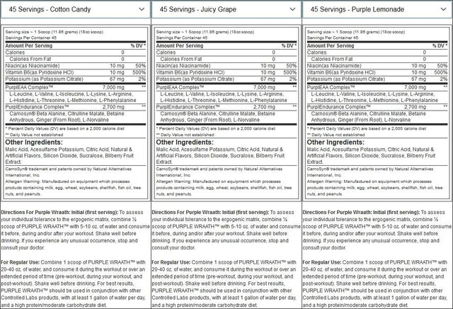 Es ist wichtig zu betonen, dass Purple Wraath keine billigen Zusatzstoffe wie Dextrose und Maltodextrin enthält, was es sicher und wirksam macht. Der Verzicht auf Tryptophan mit beruhigenden Eigenschaften stellt zudem sicher, dass das Produkt für aktives Training geeignet ist. Für optimale Ergebnisse kombinieren Sie intensives Training mit dem schnell absorbierenden PurplEAA-Komplex und PurplEndurance, das kein Koffein enthält und die Energie während der Anstrengung aufrechterhält.