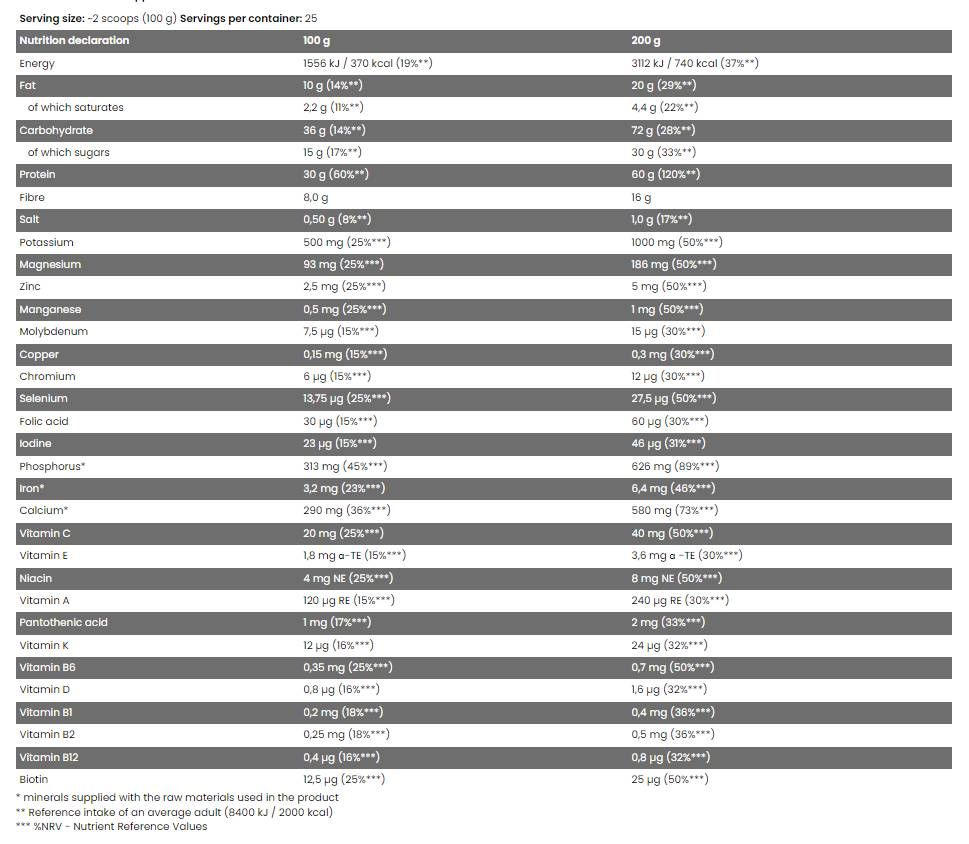 Eine Portion enthält 30g hochwertiges Protein – Molken- und Erbsenproteinkonzentrat