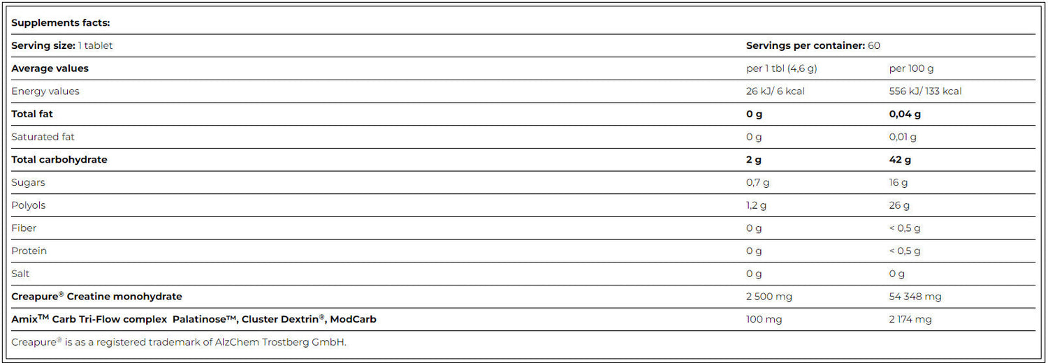 Performance Kreatine Creapure 2500 mg/60 Kauen - 0,000