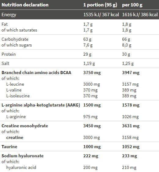 REANIMATOR enthält alle wesentlichen Inhaltsstoffe für die Muskelregeneration und -entwicklung in Formen, die für das Muskelgewebe am nützlichsten und am leichtesten zugänglich sind. Das Produkt basiert auf synchron wirkenden Substanzen mit unterschiedlichen Absorptionszeiten, um nach dem Training einen konstanten Zugang zu Energieverbindungen, Nährstoffen und Bausteinen des Muskelgewebes zu gewährleisten. Darüber hinaus ist das Produkt mit Kollagen, Glucosaminsulfat und Hyaluronsäure angereichert – Makromolekülen, die für die Ernährung, Hydratisierung und Regeneration des Bewegungsapparates äußerst wertvoll sind und die Regeneration von Sehnen, Bändern und Gelenken fördern, die durch langes und intensives Training geschädigt wurden.